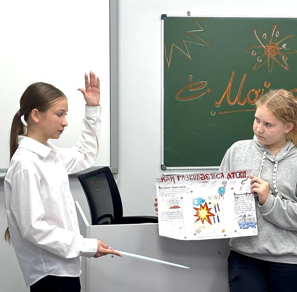 в конце ноября 2025 года прошла защита творческих работ учащихся 7,8 классов по теме "МОЙ АТОМ"